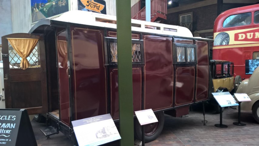 Now for something a little different! Tucked away amongst these magnificent machines is a slice of holiday history. This isn’t just any old trailer; this was the height of luxury ‘glamping’ in the 1920s. The Eccles company was taken over in 1919 by W.A.J Riley and his son, who, having just returned from the First World War, was inspired by the use of trailers by the military. He decided to build a luxurious caravan for leisure. The Eccles brand still exists today as part of the Swift Group, producing everything from cosy two-berth tourers to giant six-berth holiday homes.