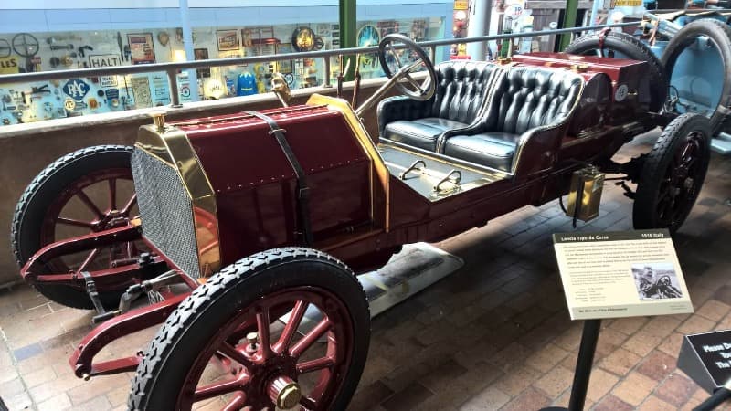 Lancia Tipo da Corsa (1910) – A thoroughbred racing car capable of reaching 75 mph. It was exported to the USA, where it won many awards. Vincenzo Lancia founded his company in late 1906, having previously worked as a test and racing driver for Fiat.