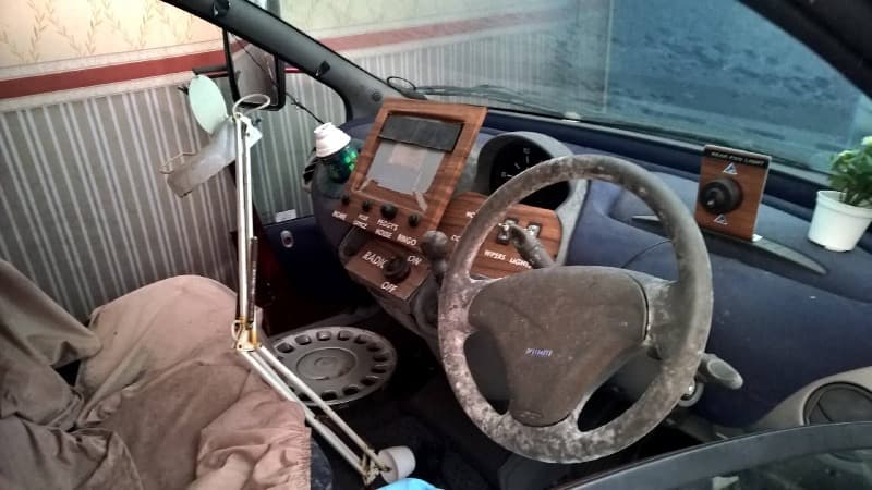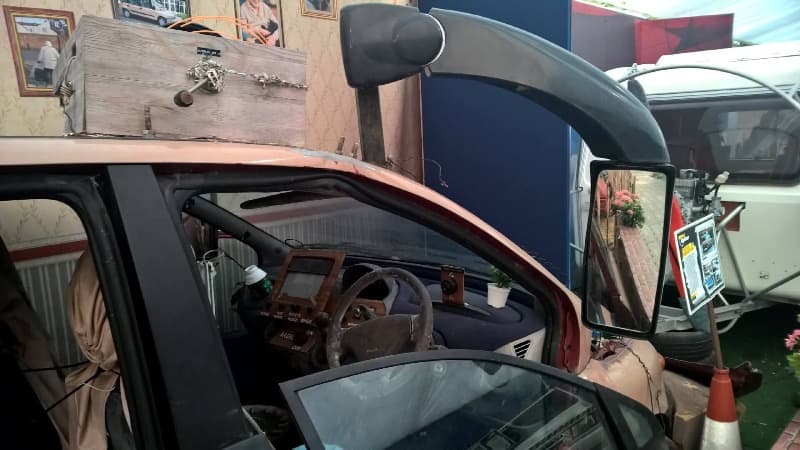 - The infamous Fiat Multipla for senior citizens (rebranded as a “Rover James”), complete with coach mirrors, chintz armchairs inside, and a sat-nav with only four saved locations: Home, Post Office, Peggy’s Bar, and the Bingo hall. It also features a rear fog light switch where both positions are “off.” The whole thing is topped off with a rooftop cross and a bumper the size of a small sofa.