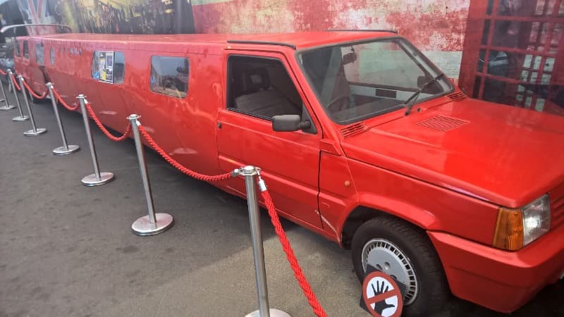 - A Fiat Panda limousine, stretched to over 14 metres long – so long that a passenger in the back needs a megaphone to speak to the driver.