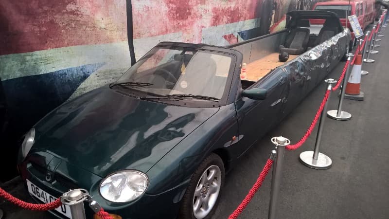 - An MG F that’s slightly shorter but boasts a spoiler several metres high. For this car, communication was handled by a landline telephone taped to Richard’s head, and they even built a mini bowling alley inside.