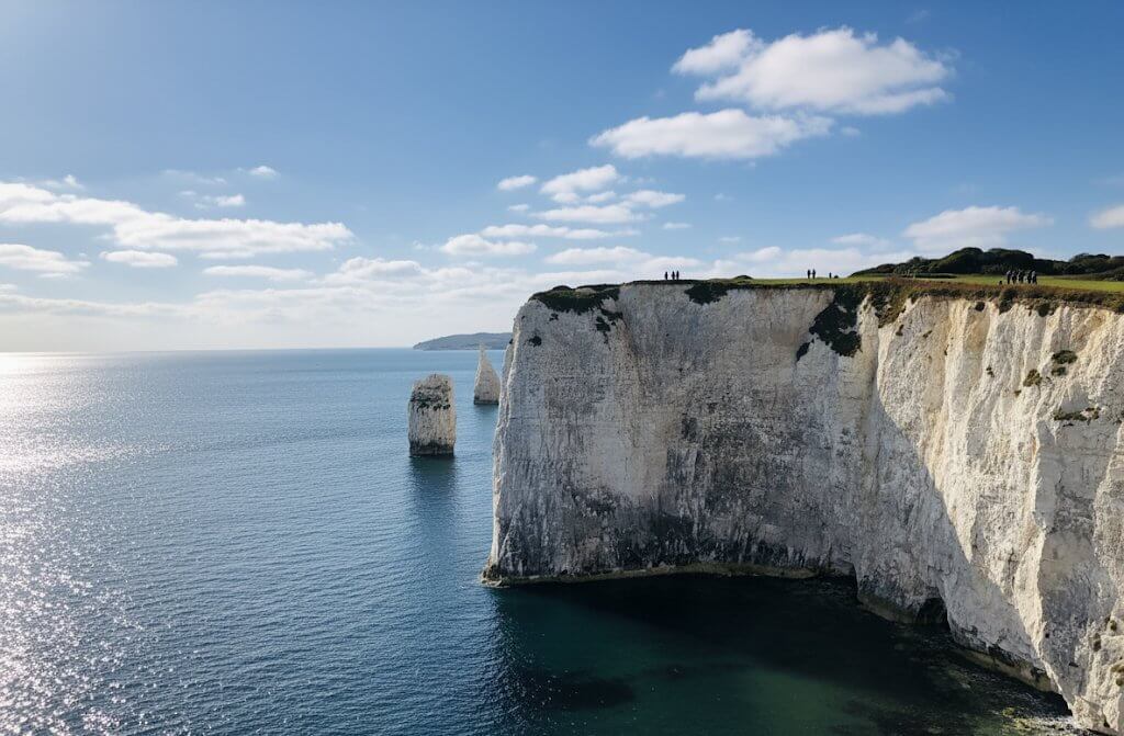 And then, you see them. After a bend in the path, they suddenly appear. The first glimpse of the pure white stacks is genuinely breathtaking, no matter how many photos you’ve seen. They seem to glow with an inner light against the deep blue of the sea and sky. Old Harry himself is the single, proud stack standing furthest out, with his ‘wife’ – a much smaller stump of chalk – slowly eroding beside him. It’s a poignant sight, especially when you learn that the original, more substantial ‘wife’ collapsed dramatically into the sea in 1896. The current stump is all that remains, a testament to the constant, unstoppable power of erosion.